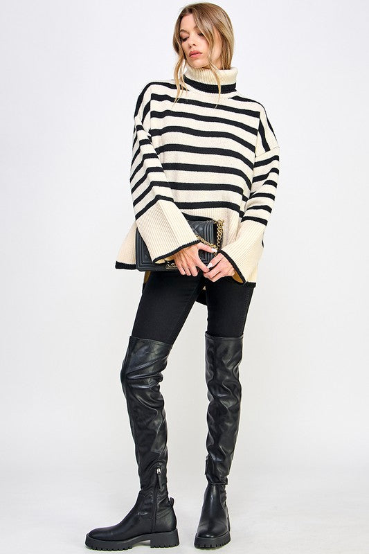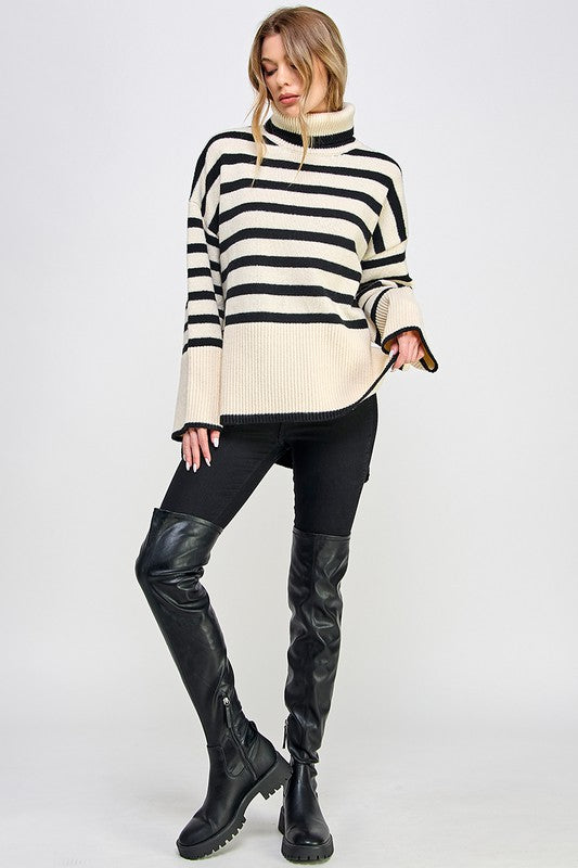 STYLE DETAILS: Pullover turtleneck sweater with wide sleeves. Pair it with jeans or leggings for a casual and chic look.